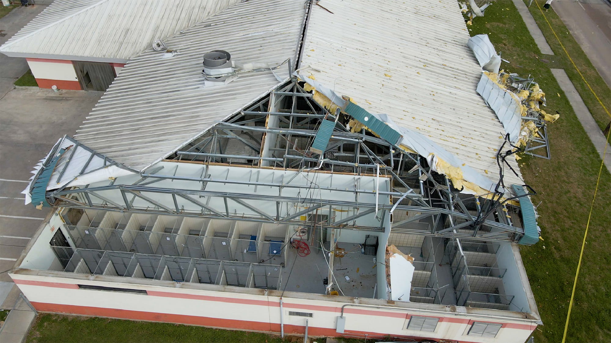 The tornado had ripped off part of the animal shelter's metal roof, impacting about 200 animals and causing over $1 million in damage, according to the City of Pasadena website. "The best way I can describe it is like if you rolled back the lid on a tin can," says Dr. Goble.